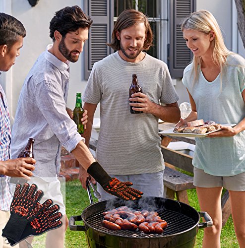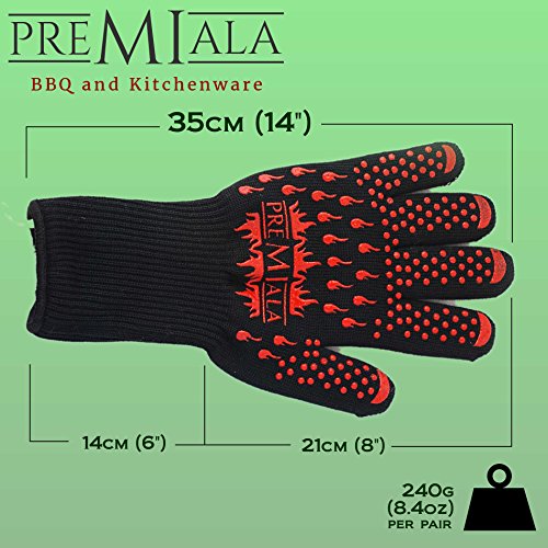 Amazing BBQ Gloves 14" can stay on while BBQ'ing for perfectly timed cooking - 2 sizes available! EN407-rated Kevlar 932F protection, best for baking, ovens, preserving! (Medium)