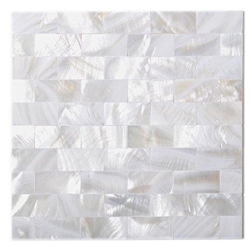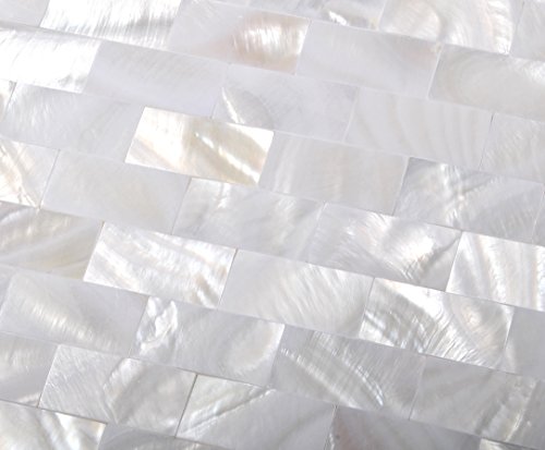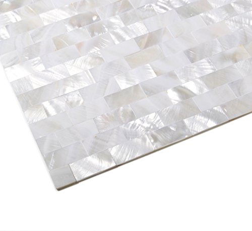 Natural Mother Of Pearl Tiles White Subway Groutless 15 x 30 mm Chips-2mm Thick Mesh Mounted-Kitchen Backsplash Bath Wall Borders Art Mosaic Shell Tiles MOP02(1 Sample 6 x 6 Inches)