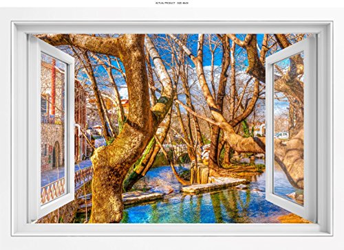 -. Title : WallPix 1341 Window View of Livadian Bridge - Central Greece 3D Wall Sticker Mural Decal - PEEL and STICK - Made from tear-proof, easy-to-clean, Bubble Free Material