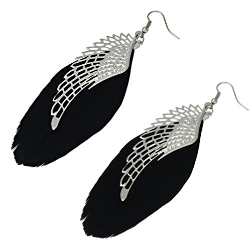 -. Title : Susenstone Angel Metal Wing Bohemian Handmade Vintage Feather Long Drop Earrings