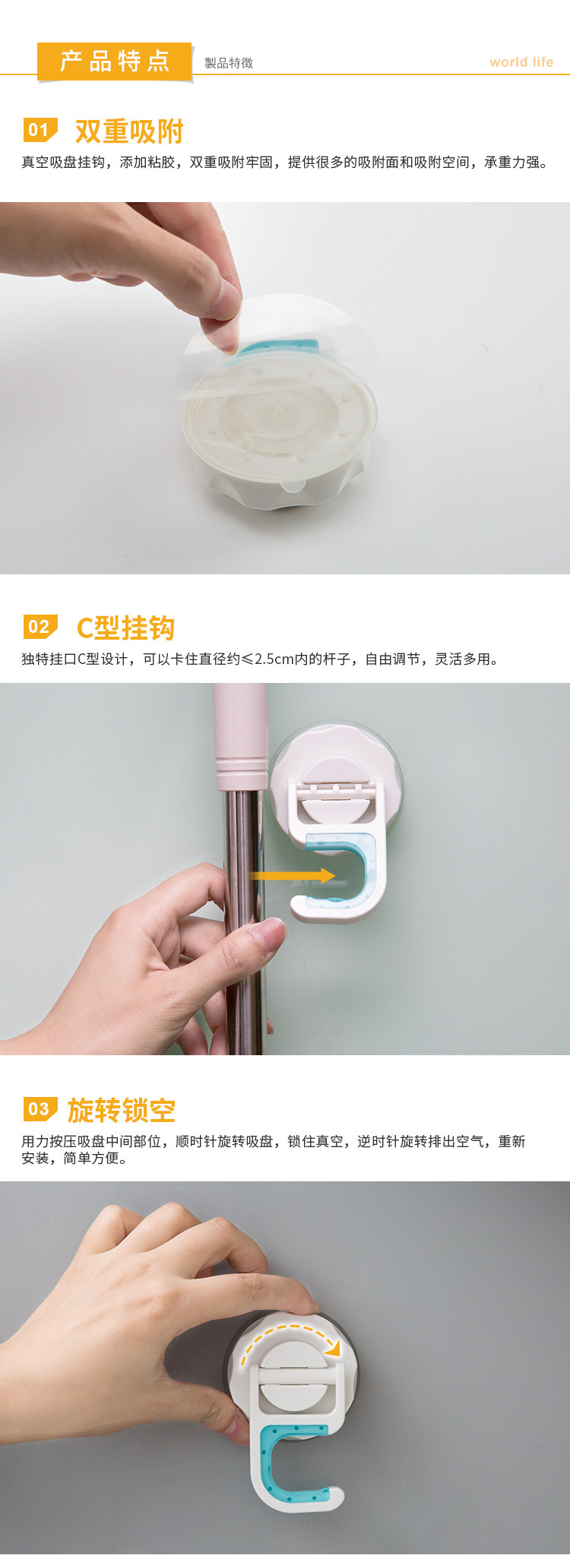 拖把架浴室卫生间吸盘挂钩壁挂免打孔挂架免钉强力无痕钩