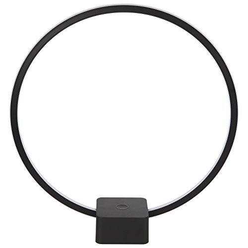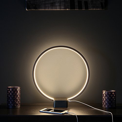 Save space and energy with the Circle Lamp. The lightweight, open-air design means you can situate it within close quarters. Approximately 15 inches in height and 14 in width, this lamp nicely decorates your nightstand, a sewing area, the top of a bookshelf, an office desk, a garage table, or almost any small location. Unlike bulky, traditional lamps, this open Circle never gets in the way of seeing what's on the other side. Because it's LED, the fixture draws only 12 watts - saving you money on your electrical bill. At a color temperature of 3,000 Kelvin, the lamp provides very bright light at its highest setting yet never overheats the room you're in. LED stays cool to the touch even after hours of use.