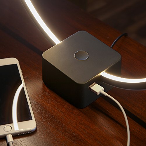 The lighting of tomorrow begins today with Brightech's Circle LED Table Lamp. This compact, energy-efficient lamp features a science-fiction-inspired design. An open orb circles over a small base with a silvery power button on the top center of the base. Press once to power up the brightest of the three light settings. The top level provides vivid lighting for you to read by or see the intricate details in craftwork. Press a second time to dim the brightness to a more subdued, relaxed setting. Press a third time and bask in a meditative low light that provides perfect "chill out" ambiance. Press a fourth time to power down.