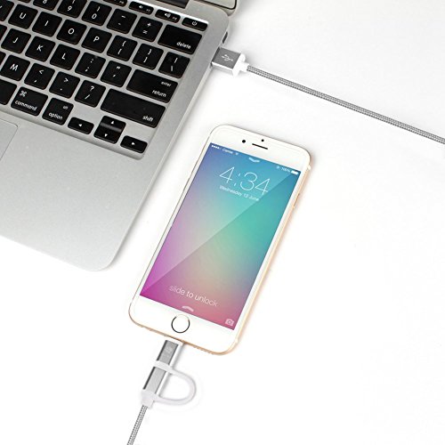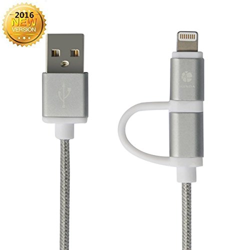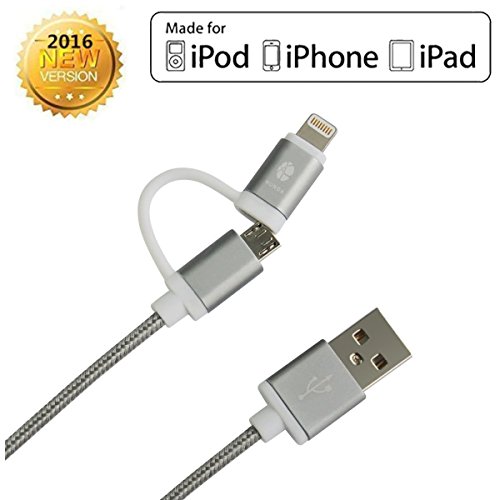 2 in 1 Lightning to USB Cable 3.3ft/1m 8 Pin 2.4A Tangle-Free Aluminum Connector Head and Nylon Braided Cable for Phone and android Devices (Grey)