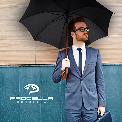 -. Feature : Sofortiger Wetterschutz - Der windfeste Schirm mit Klettgurt bietet Regen- und Sonnenschutz. Dank seiner automatischen Öffnungsfunktion spannen Sie ihn schnell auf und werden nie mehr vom Wetter überrascht. Er schützt Ihr Gesicht und Haar vor stürmischem Wetter oder staubiger Luft. / Reisen mit Stil - 400 Gramm leicht, dieser Gehstock Regenschirm für die Stadt kommt in klassischem Schwarz und ist der perfekte Spazierstock für Männer und Jungen sowie ein eleganter Sonnenschirm für Frauen und Mädchen. Sein gebogener Holzgriff gibt ihm zusätzlich Klasse, egal wohin Sie gehen. / Ein Geschenk aus Gehstock und Regenschirm - Procella-Produkte bieten Langlebigkeit wie keine anderen Schirme und ein Geschenk für Freiluftfanatiker. Leistungsstark dank des Glasfaser-Rahmens, dem resistenten und wasserdichten Stoff schützt er auch vor extremen Wetterbedingungen. / Bester Unisex Regenschirm - Im klassischen Portier-Style gefällt er sowohl Männern als auch Frauen für Regenschutz in der Stadt, Schatten fürs Golfen in praller Sonne, am Strand oder bei Sportveranstaltungen im Freien. Wir garantieren 100% Zufriedenheit, sonst bekommen Sie Ihr Geld zurück. / 365 Tage im Einsatz - Der Procella Schirm ein Top-Marktprodukt und Accessoires fürs ganze Jahr. Super für Sommer-, Winter-, Herbst- und Frühlingswetter geeignet: wasserabweisend bei Regen und Schnee, windresistent auch bei starkem Sturm. Er rostet nicht, daher garantierte Langlebigkeit.