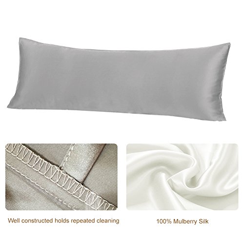 Taihu Snow Silk Zipepred Body Pillow Protector, 100% 19mm Mulberry Silk (20x60, Black)