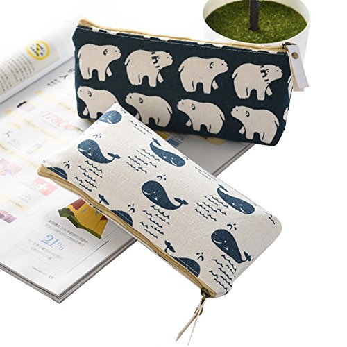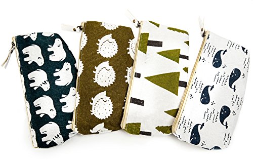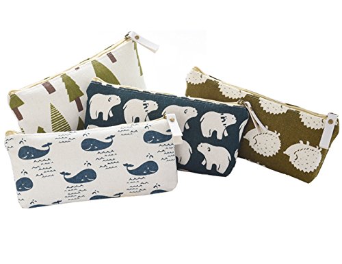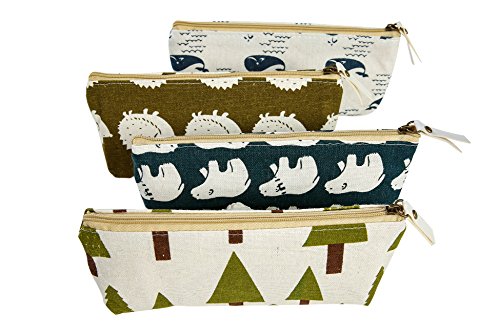 iSuperb Set of 4 Cotton Linen Cloth Pen Bag Pencil Case Bag School Stationery Organizer Cosmetic Makeup Bag Pouch Handbag 7.7x3.3x1.4inch (Forest and Animals)