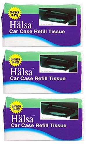 Refills for Tempo visor tissue holder. 3 bags containing 9 individually packaged refills: for a total of9 refills. 3-ply tissue by Halsa. Fits the Tempo car visor tissue holder (sold separately).