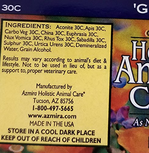 -. Binding : Misc. -. Brand : Azmira -. EAN : 0636371004110 -. Feature : Homeopathic remedy is fast acting and safe / Non-toxic, can be used with traditional treatments / Easy to give to any animal, any age -. Label : Azmira -. Manufacturer : Azmira -. PackageQuantity : 1 -. ProductGroup : Pet Products -. ProductTypeName : PET_SUPPLIES -. Publisher : Azmira -. Studio : Azmira -. Title : Azmira 'G Drops - 1oz -. UPC : 636371004110
