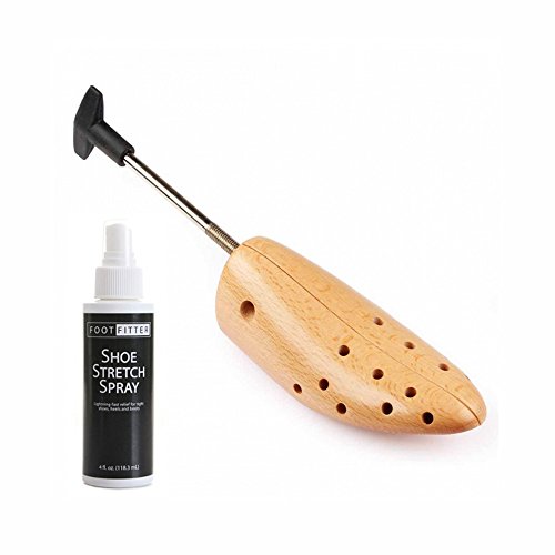 Product Description The FootFitter® Premium Professional One-Way Shoe Stretcher transforms any pair of tight shoes for men or women into perfectly fitting, comfortable shoes. No more breaking-in of new shoes. The FootFitter® Premium Professional One-Way Shoe Stretcher can help you with many foot problems and with foot pain caused by tight shoes. With the FootFitter® Premium Professional One-Way Shoe Stretcher you can widen the shoe in oppressive places. The FootFitter® Premium Professional One-Way Shoe Stretcher can be used for the right and the left shoe. It is a simple and easy way to make tight or oppressive shoes for men and women fit comfortably. The FootFitter® Premium Professional One-Way Shoe Stretcher is characterized by excellent quality. The front section is made of high polished beech wood, and all its mechanical parts are constructed from stainless steel with nickel plating. The use of these premium materials guarantees extraordinary durability. The FootFitter® Premium Professional One-Way Shoe Stretcher is manufactured in compliance with high-standard German quality requirements, so you will be able to enjoy this product for a very long time. Easy handling makes the FootFitter® Premium Professional One-Way Shoe Stretcher the ideal tool for do-it-yourself shoe stretching. The FootFitter® Premium Professional One-Way Shoe Stretcher is available in 3 different sizes for women and in 4 different sizes for men. It comes with three corn pieces, which differ in size. The front section of the FootFitter® Premium Professional One-Way Shoe Stretcher is equipped with fourteen holes into which the corn pieces can be fitted. This allows you to widen your shoe exactly in those areas where the pressure points are located. 0