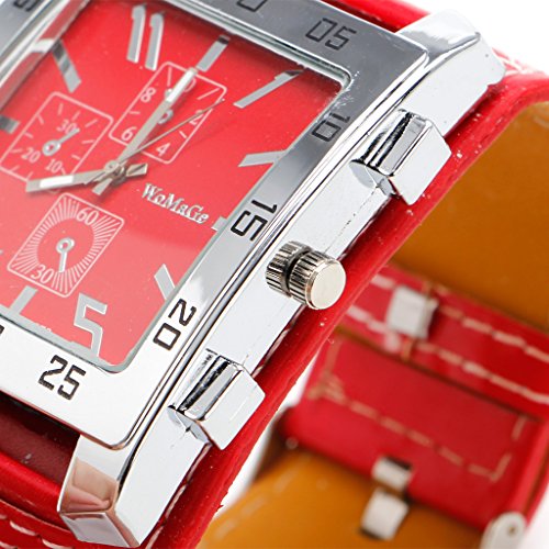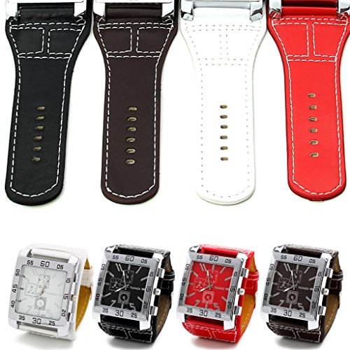 -. Feature : Unique Square design, very fashion and personality! / As a perfect gift for yourself or friends / Gender: Unisex / Watch band material: synthetic leather. Watch case material: Stainless steel. / Total length: 23.7cm/9.33"(approx). Band Width: 3cm/1.18"(approx) the widest:4.7cm/1.85". Watch Face Size: 4.7x4.5cm/1.85"x1.77""(approx)