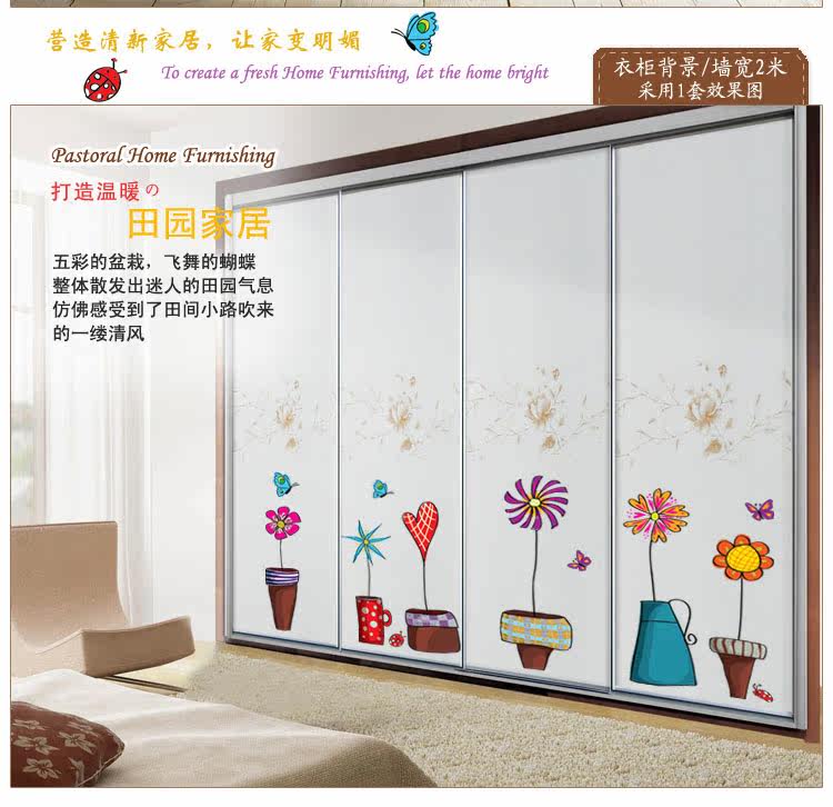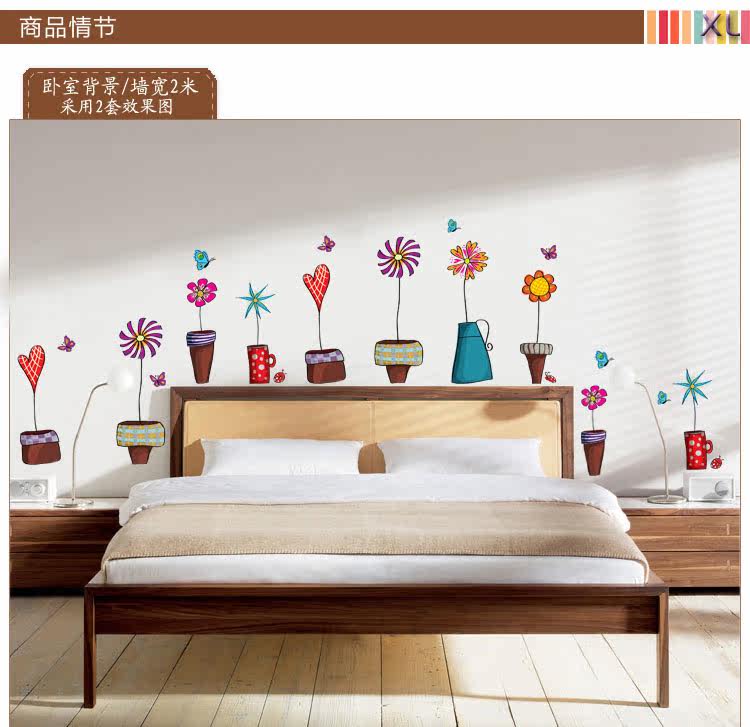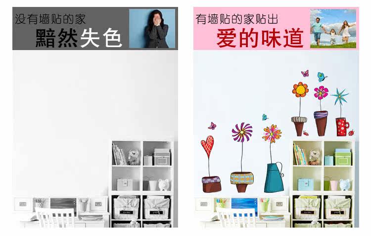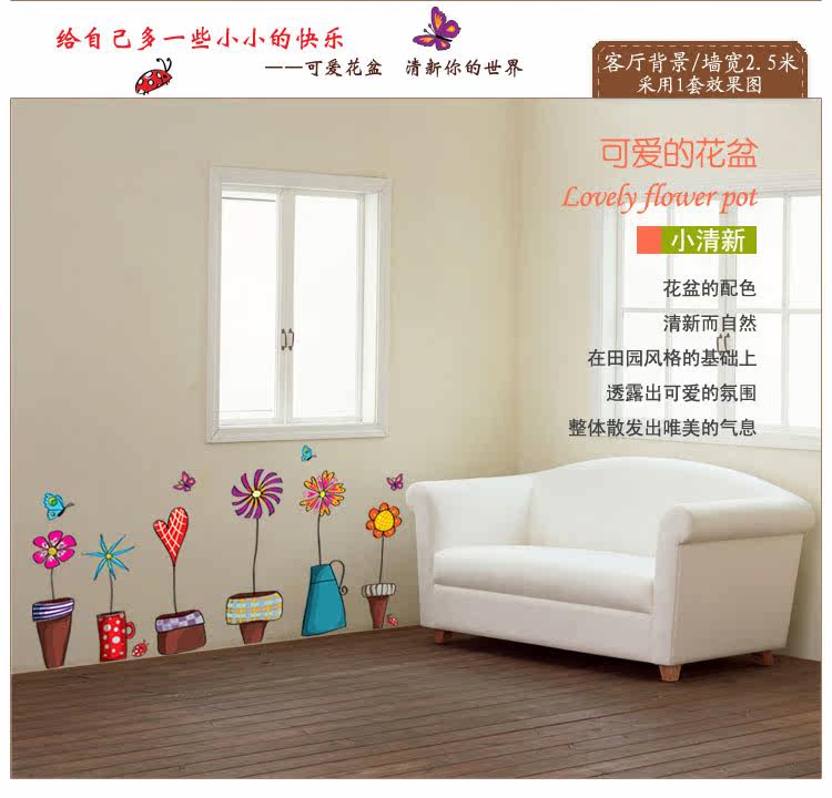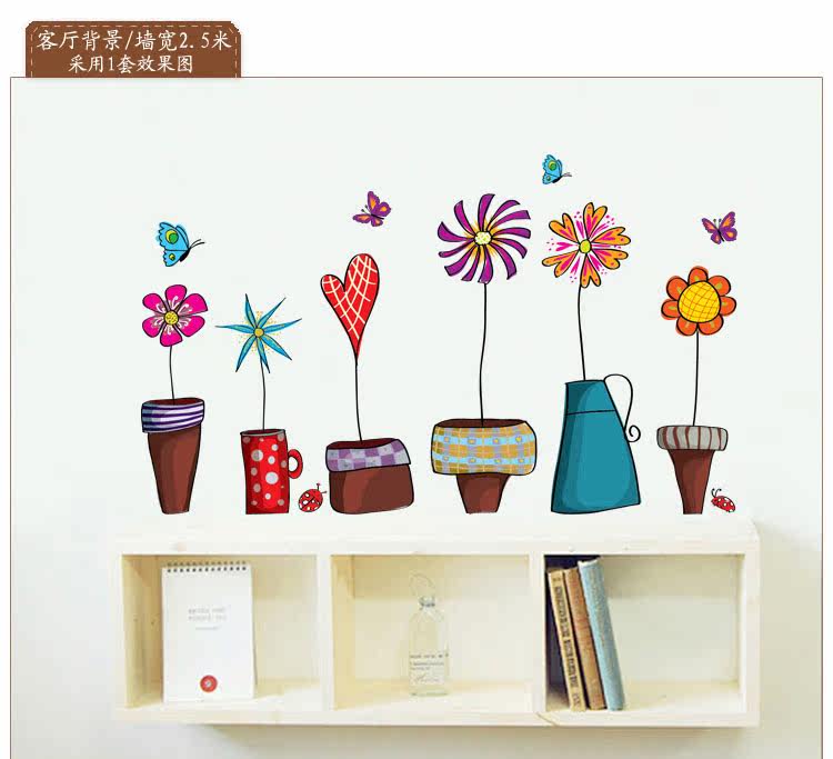 创意花盆卧室客厅装饰床头窗台贴纸玄关墙角门贴画阳台防水墙贴纸