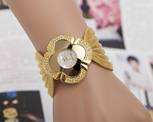 -. Feature : Elegant Fashion Bracelet design / Quartz movement, accurate and long lifetime / High quality gold ion-plated strap & case / Stainless Steel Mesh strap, simple and luxury / Best gift for Women and Ladies