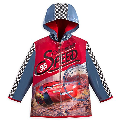 -. Binding : Apparel -. Brand : Disney -. Color : Multicolor -. Department : boys -. Feature : Genuine, Original, Authentic Disney Store / Hooded zip jacket / ''Nothing But Speed'' screen print / Hood with checkered flag piecing / Clear overlay with speedometer graphic -. Model : 5805040730266900 -. ProductGroup : Apparel -. ProductTypeName : OUTERWEAR -. Title : Disney Lightning McQueen Rain Jacket for Boys