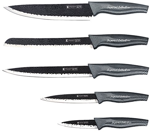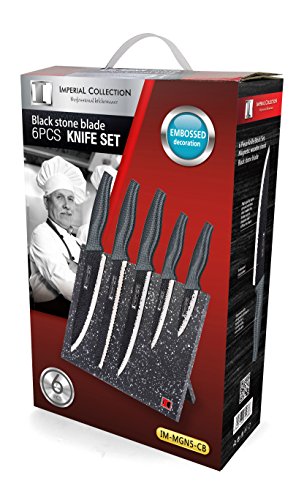 Imperial Collection Stainless Steel Kitchen Cutlery Knife Set with Wooden Permanent Magnetic Knife Block, Ergonomic Soft Grip and Embossed Non-Stick Coating, 6-Piece - Carbon Fiber