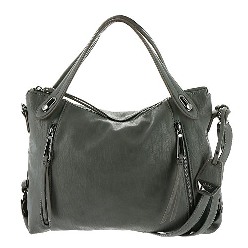 -. Feature : This trendy satchel is all you need to tie your outfit together / Interior slip pockets, back wall zip pocket, and exterior zip pocket / Removable crossbody strap / Synthetic / 15-1/2"Lx4"Dx11-1/2"H