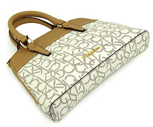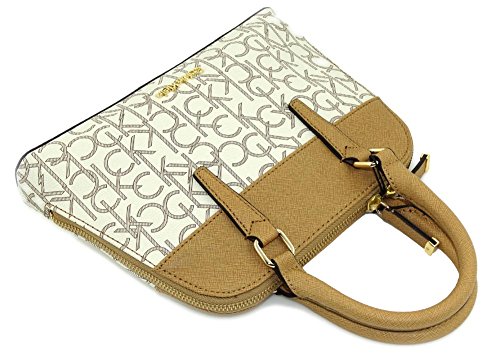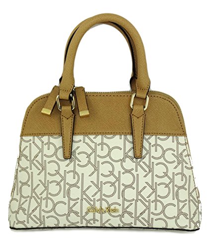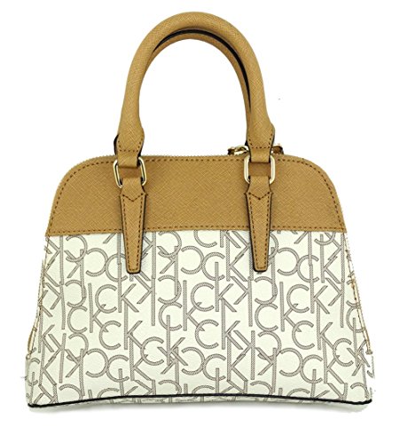 -. Brand : Calvin Klein -. Color : beige -. Department : womens -. Feature : Calvin Klein CK Monogram Dome Satchel Crossbody Bag / Gold tone engraved hardware. Full zip top closure. / Top handle satchel style or detachable long strap for shoulder or crossbody. / Measures about 10 x 7.25 x 2 inch. Strap measures up to about 50 inches. / Double handles measure about 12 inches each. Fully lined signature CK cloth. Extra inside pockets. -. PackageQuantity : 1 -. ProductGroup : Shoes -. ProductTypeName : HANDBAG -. Size : Small -. Title : Calvin Klein CK Monogram Dome Satchel Crossbody Bag