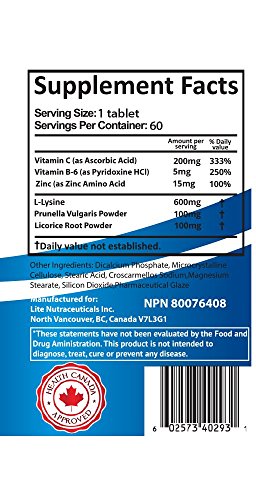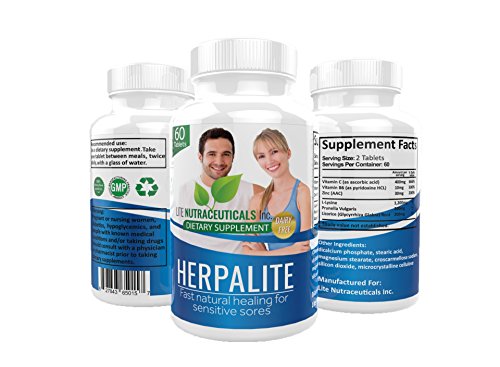 -. Binding : Health and Beauty -. Feature : High potency L-Lysine & Zinc: double healing speed and isolates the virus resulting in 60% lower recurrences of herpes zoster outbreaks / Prunella Vulgaris & Licorice Root: anti-viral and anti-inflammatory properties effective for cold sore treatment and herpes treatment / Vitamin C & B6: boosts the immune system and reduces stress on the body to drastically reduce outbreaks of cold sores canker sores and shingles / Quality: non-GMO ingredients are all natural high potency Health Canada approved & manufactured in FDA approved facility / Size: smaller than the size of a quarter and high potency means take less pills required each day than the competition -. IsAdultProduct : 0 -. Label : Lite Nutraceuticals -. Manufacturer : Lite Nutraceuticals -. PackageQuantity : 1 -. ProductGroup : Health and Beauty -. ProductTypeName : HEALTH_PERSONAL_CARE -. Publisher : Lite Nutraceuticals -. Studio : Lite Nutraceuticals -. Title : Herpalite - Daily Cold Sore Treatment Prevention Tablets with High Potency L-Lysine