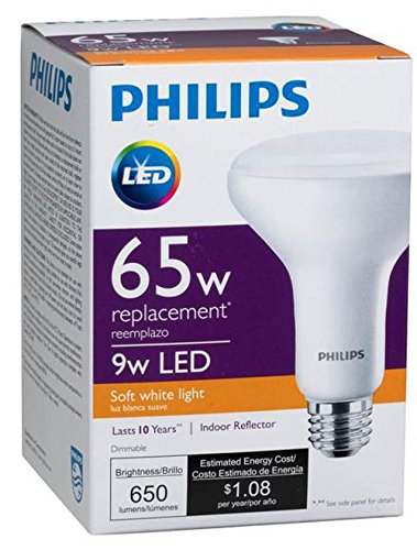 - Philips BR30 LED flood light bulbs provide 650 lumens of soft white light, equivalent to 65-watt incandescents with 80% less energy use. These bulbs fit standard medium base (E26) fixtures and are ideal for recessed can style lights.