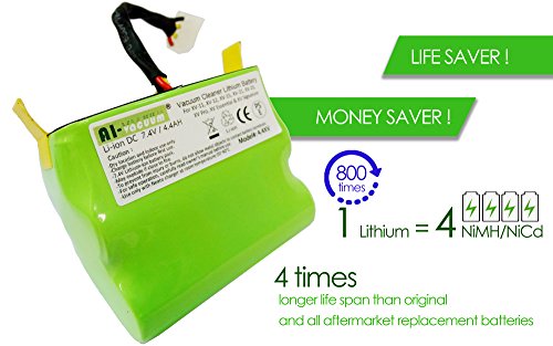 -. Feature : 4x longer battery life than Neato® batteries and all aftermarket replacement NiMH batteries. Remains at 80% capacity after 800 charge cycles / We guarantee this Li-ion battery has superior performance than any NiMH battery in market. / Save money by using a lithium battery (800 cycle times, 1 Lithium battery = 4 NiMH/NiCd batteries). / FULLY compatible with the original charger and vacuum. Built-in over-charge, over-discharge, over-voltage, over-current, and over-temperature protection circuit. / Risk free 30 days money back guarantee, and 18 month warranty.