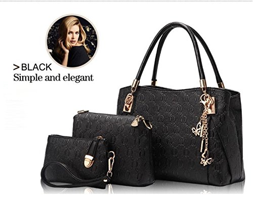 -. Feature : Material: High quality Soft PU Leather with Luxury type,no smell,comfortable strap to wear / Multi outside and inner pockets & extra removable shoulder strap,hand clutch purse and shoulder bag / 3 years warranty for handbag,shoulder bag and purse with plenty of inside pockets to put mobile,ipad ,cosmetics,book,etc / 3Pcs Set multifunctional handbag: 1 handbag, 1 shoulder bag, 1 purse with keychain . / Soft Pu leather material,lightweight,easy and fast to clean stain,big and roomy, not bulky