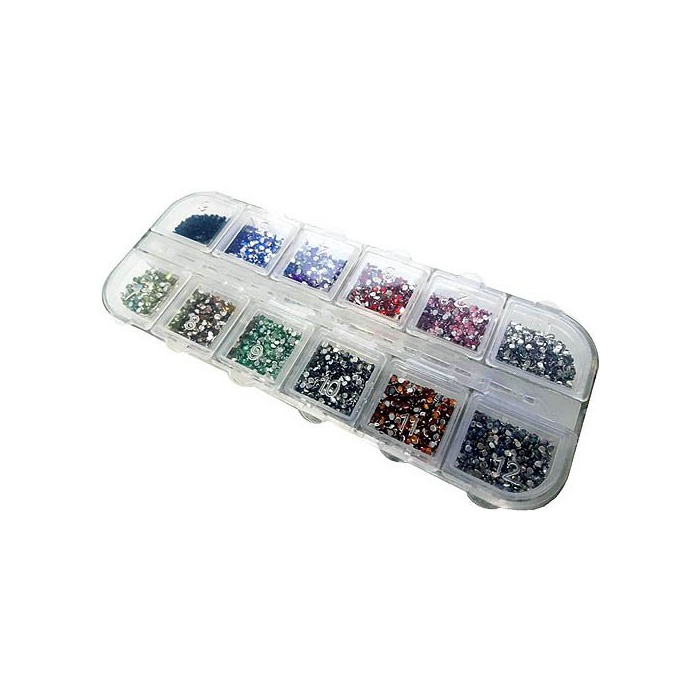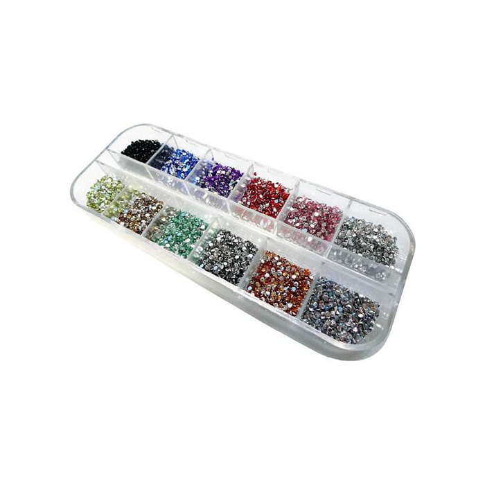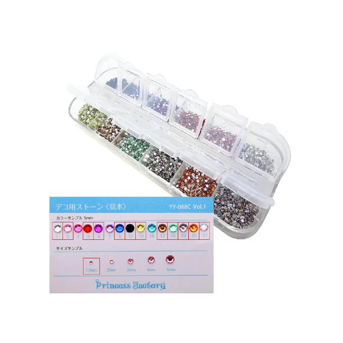 Princess-style 컬러 라인 스톤12색 케이스입 네일 데코용 대용량 세트 3mm(약3,000알)