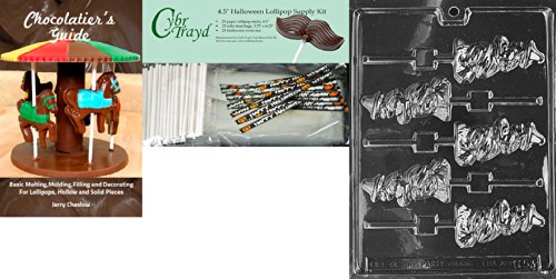 Cybrtrayd "Witch Broom Lolly" Chocolate Mold with Chocolatier's Bundle, Includes 25 Lollipop Sticks and 25 Cello Bags