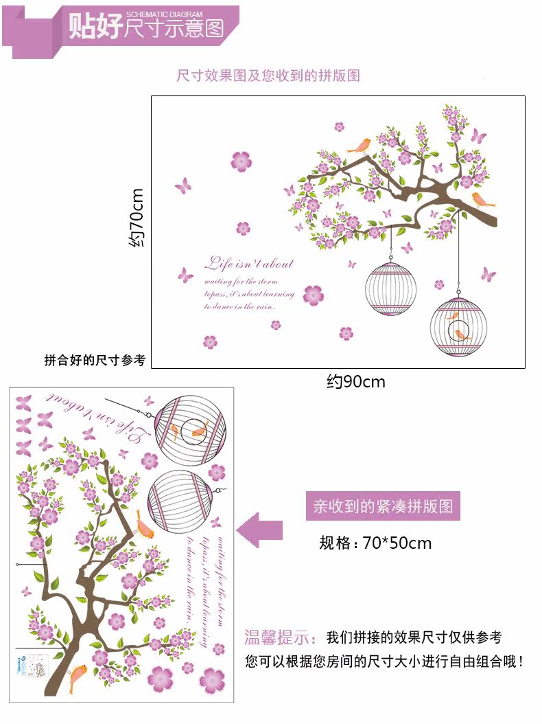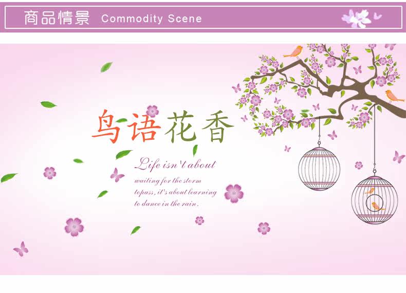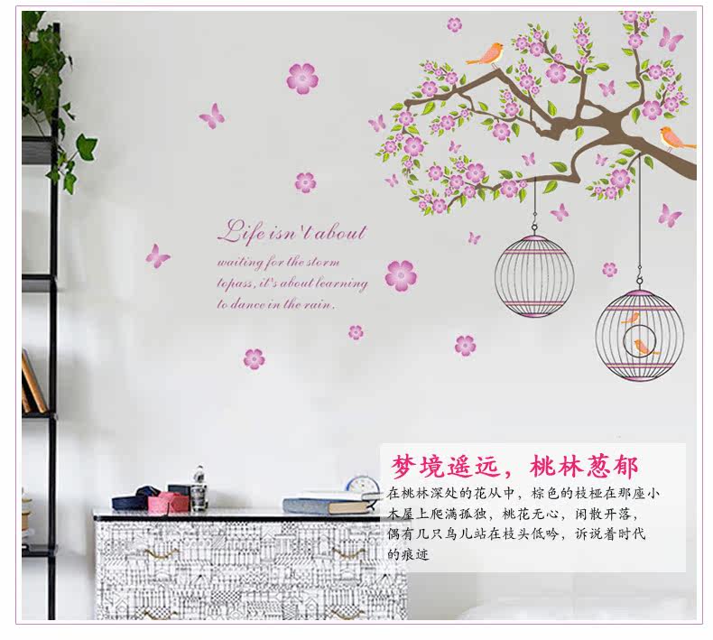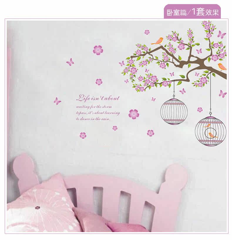 浪漫唯美花树鸟儿墙贴可移除卧室客厅沙发背景抽象贴纸儿童房贴画