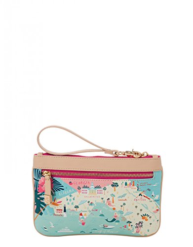 -. Feature : Textured coated vinyl exterior with faux leather accents / Zip closure / Canvas interior / Width: 9" ~Height: 6" ~Depth: .5"