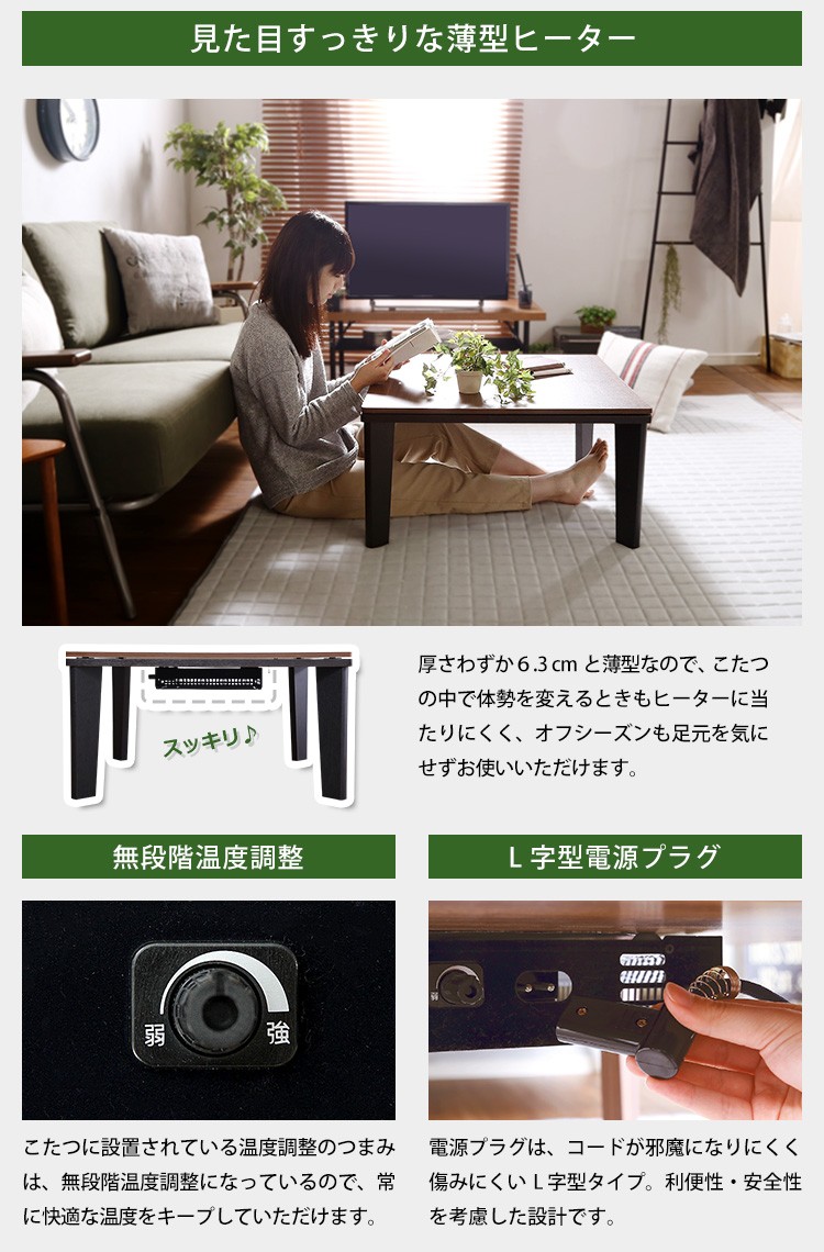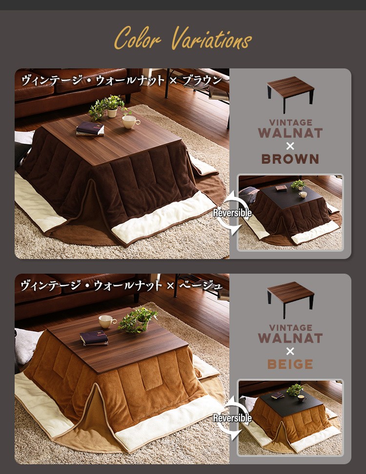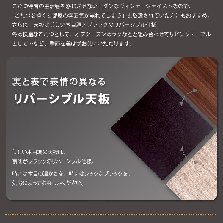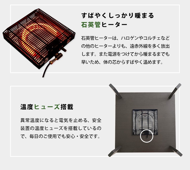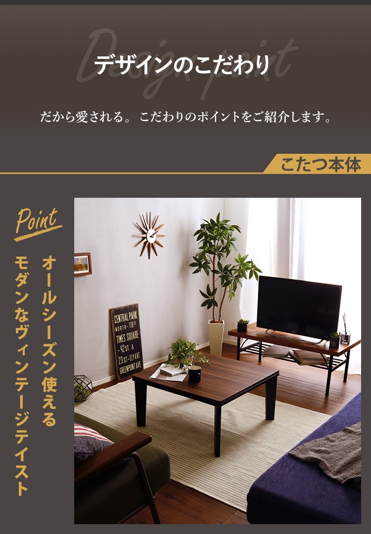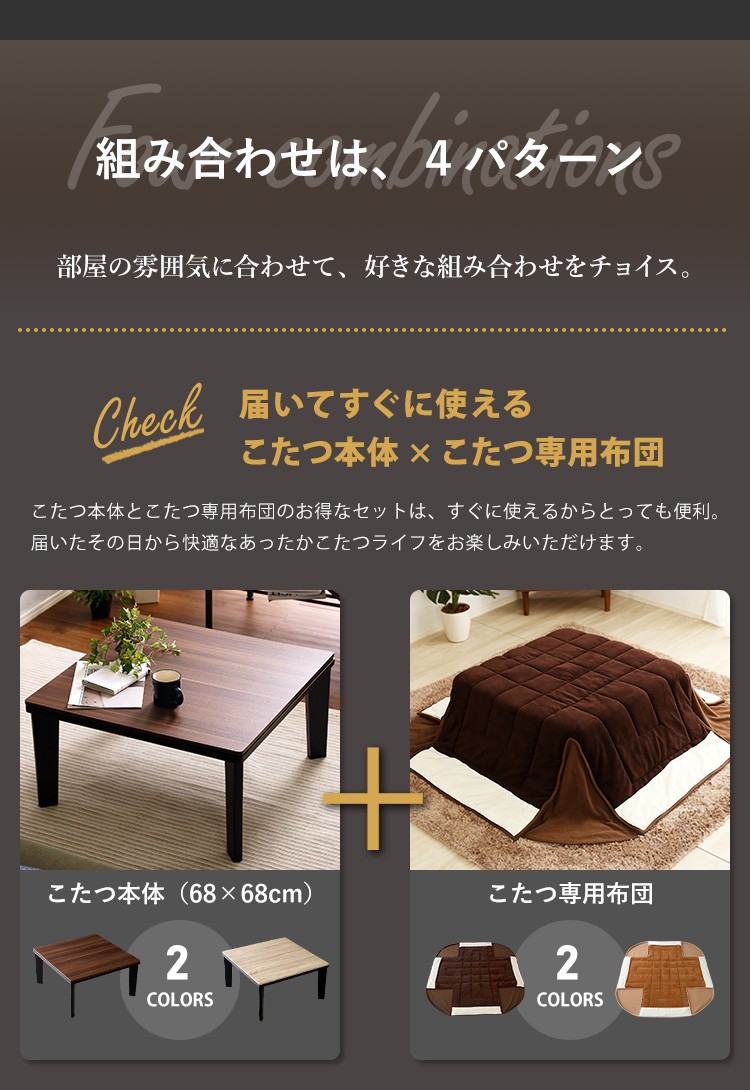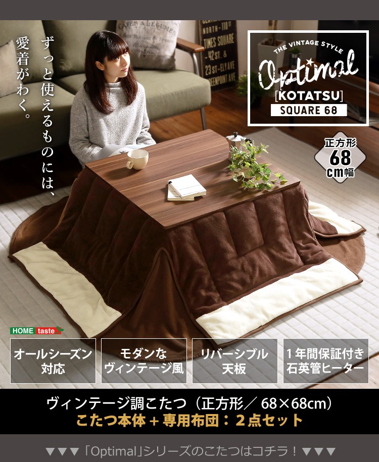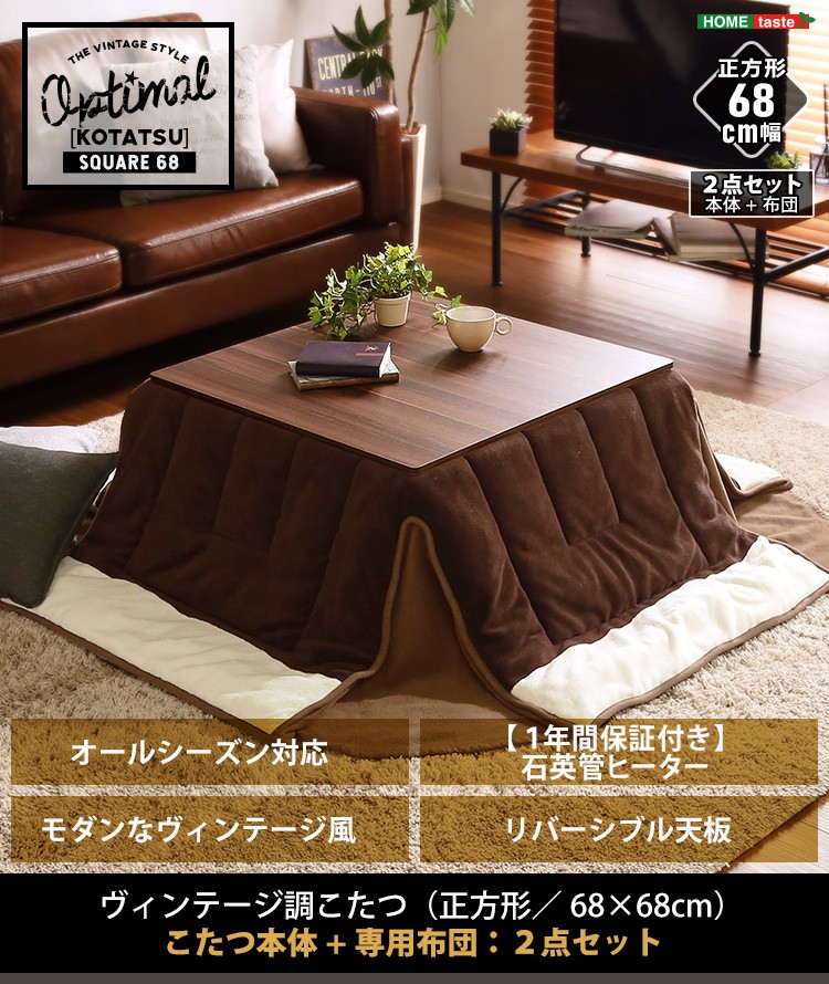カジュアルこたつ ヴィンテージタイプ 石英管ヒーター付 68cm幅 正方形 【OPTIMAL -オプティマル-】シリーズ [SQUARE 74] 肌触りが心地良い フリース生地 こたつ布団SET