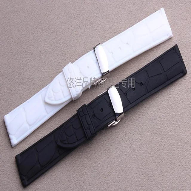 | [해외]할인 교체 실리콘 시계 줄 스틸 버클 흰색 고무 스트랩 남성 스포츠 여성 시계 DIY 시계 밴드 악어 곡물 |