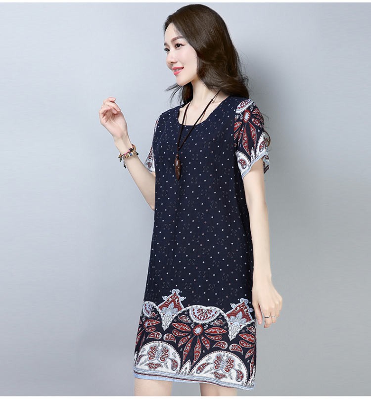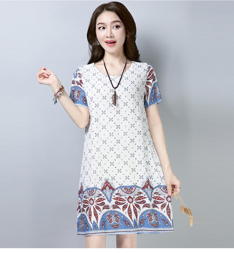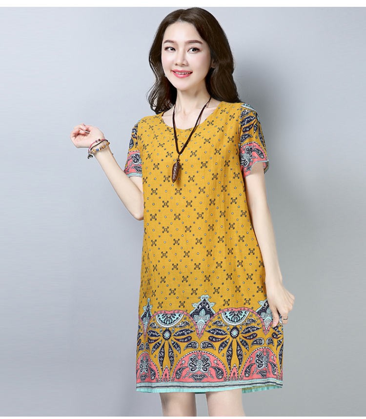 エレガントなクラシックプリントのシンプルラインの半袖ワンピースです♪