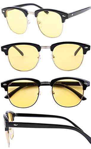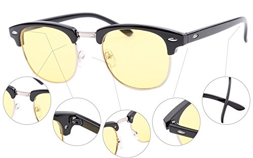 These sunglasses feature UV400 Lens Technology, absorbing 100% of harmful UVA and UVB rays. Reduces glare.FDAmpact Resistant Lens.---They are perfect for night driving at night, fog, cloudy, rainy driving and outdoor sports wear, can effectively enhance the bright color, clarity, so that the surrounding scenery is more bright and clear, driving safer