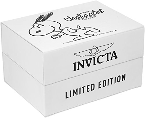 Invicta 24786 Snoopy & Woodstock Character Limited Edition men's automatic dive watch features a 40mm wide and 14mm thick solid stainless steel case with a unidirectional rotating blue accented gold tone bezel and textured screw down crown. Invicta 24786 is powered by Japanese SII NH35A automatic movement with 24 jewels. This stylish watch also features Snoopy and Woodstock printed shiny sunray blue dial with white accents gold tone luminous hands and dot hour markers along with the date display function, scratch resistant mineral crystal and water resistant to 200 meters. Invicta 24786 is equipped with a 20mm wide two tone yellow gold plated solid stainless steel bracelet with a fold over safety lock clasp. Invicta 24786 men's Snoopy & Woodstock Character blue dial two tone bracelet automatic dive watch is brand new and comes in an original Invicta gift box and is backed by a 5 year limited warranty.Feature