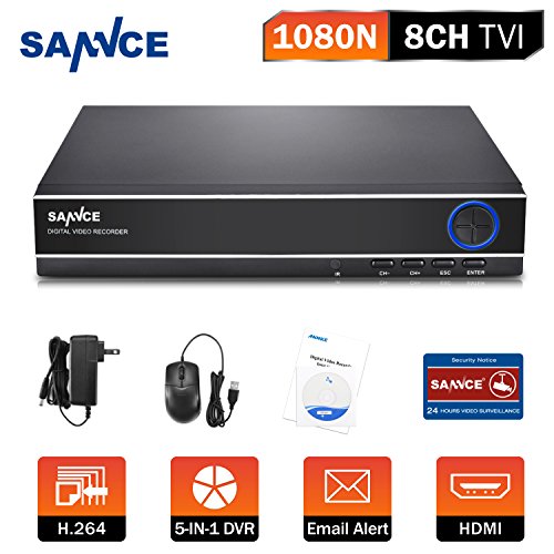 -. Feature : View your world like never before with 960*1080pixels SANNCE Security DVR System. This easy to install DVR boasts 1080N recording capabilities producing outstanding high definition images that bring everything back to life / You can freely enjoy three connection modes with this one multi-function surveillance digital video recorder. Analog, AHD, TVI as well as HD IP cameras are all connectable to it providing you the chance to take full advantage of your old cameras / Get a smartphone, table or computer and get real-time monitoring of your home and office no matter where you are. With the free and easy-to-use app, remote monitoring can be as easy as ABC / While working with cameras, every unexpected movements that thrown into the cameras' eye will be detected and recorded. At the same time, you'll get timely notified by email on your smart devices / By supporting ONVIF protocol, this DVR is connectable to third party cameras. With this powerful compatibility, you're allowed to take full advantage of your cameras and have full control over them
