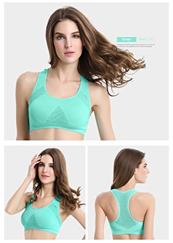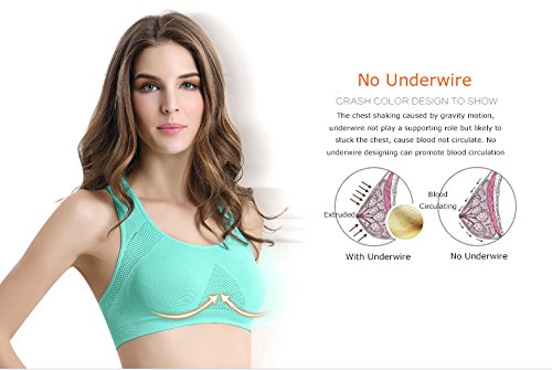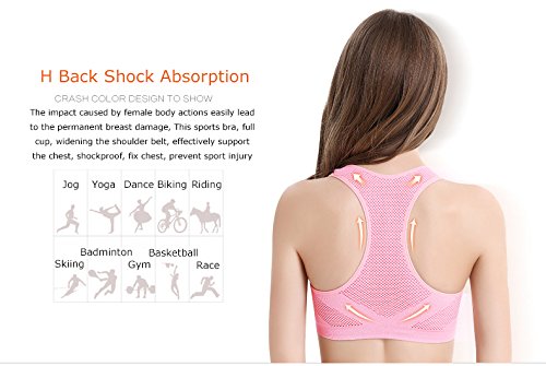 -. Feature : Material:90% Nylon,10% Spandex.Classic pullover style with racer back design for enhanced range of motion and easy layering.Tiny mesh decorated on the bra helps your skin to breathe more freely / Active workout racerback seamless sports bra &tight fitting for support / Medium Support and Elastic Closure/Super comfort and super soft fabric / Moisture wicking and perfect for any type of Physical Activity. / Constructed with Removeable Pads and Wide Shoulder Straps for a Cool and Comfortable Fit,seamless design to minimize chafing and 4-Way stretch to maximize comfort / Ideal for everyday active lifestyle like Sports,Gym Exercise & Fitness,Yoga,Walking & Jogging & Running,Cycling,Boxing,Bowling,Tenis,etc. / Wear as leisure bra, sleep bra, sports bra or short camisole.Slip on non-wired bras with elastic trims under bust to prevent rolling up.