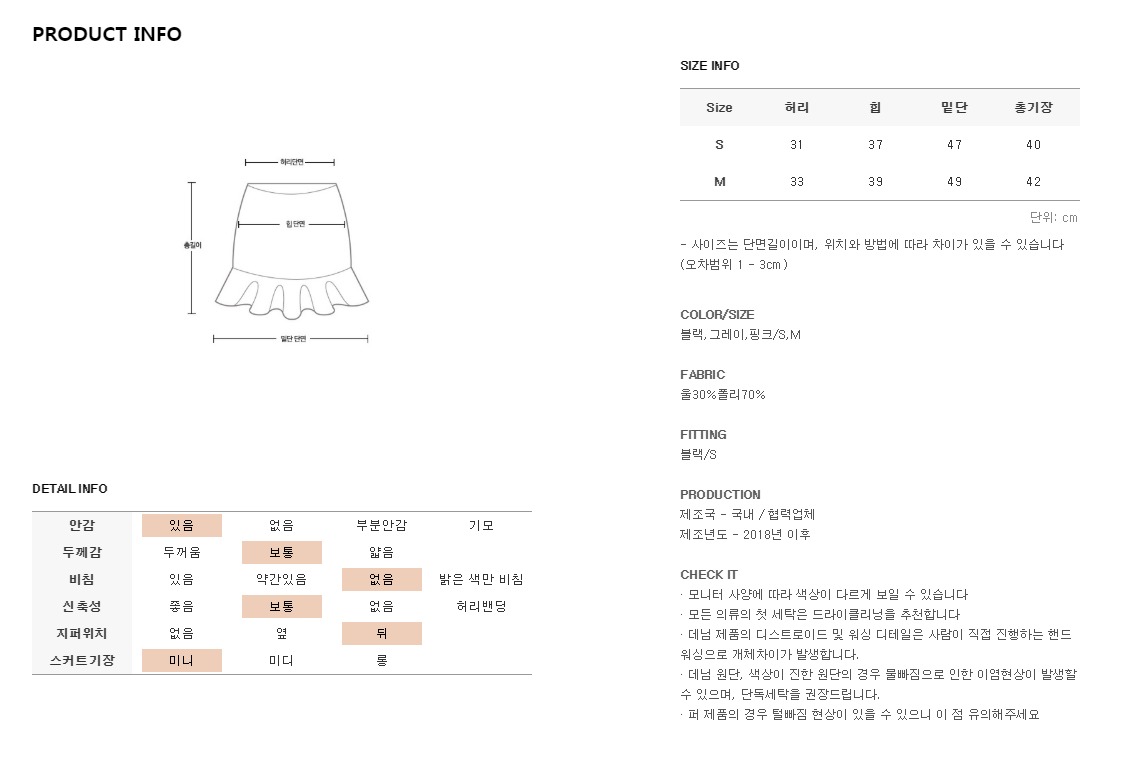 모델(키:164)이 착용했을때 허벅지를 살짝 덮는 미니기장이였어요