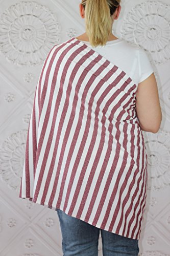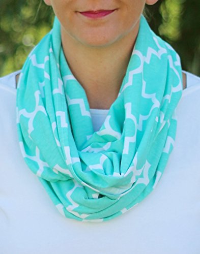 -. Feature : Made in the USA, now with finished edge (see pictures) / One less thing in your diaper bag - one more stylish accessory in your wardrobe! / Fashionable infinity scarf that easily unwraps into a discreet nursing cover that is convenient and easy to use. / Full coverage for your front, back, and sides while nursing / Soft, lightweight fabric made of 50% cotton and 50% polyester jersey knit fabric
