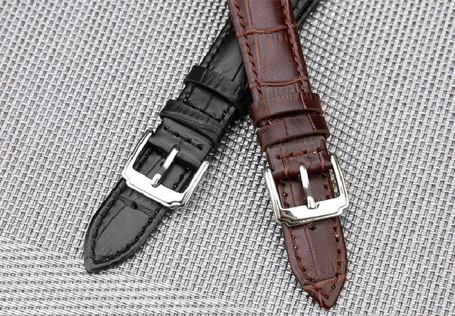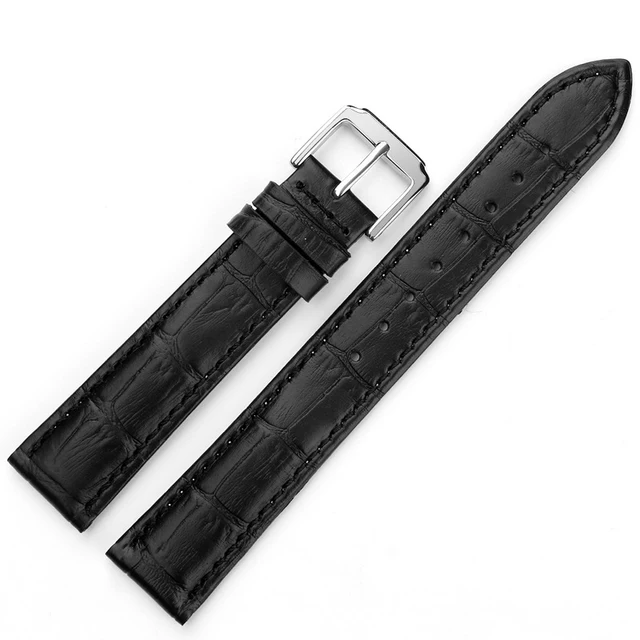 | [해외] 내구성 블랙 브라운 정품 가죽 시계 스트랩 남성 여성 12, 14,16 18 20 22 24 미리메터 시계 밴드 스테인레스 스틸 핀 버클 |