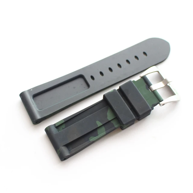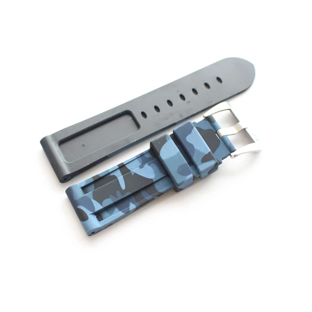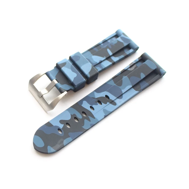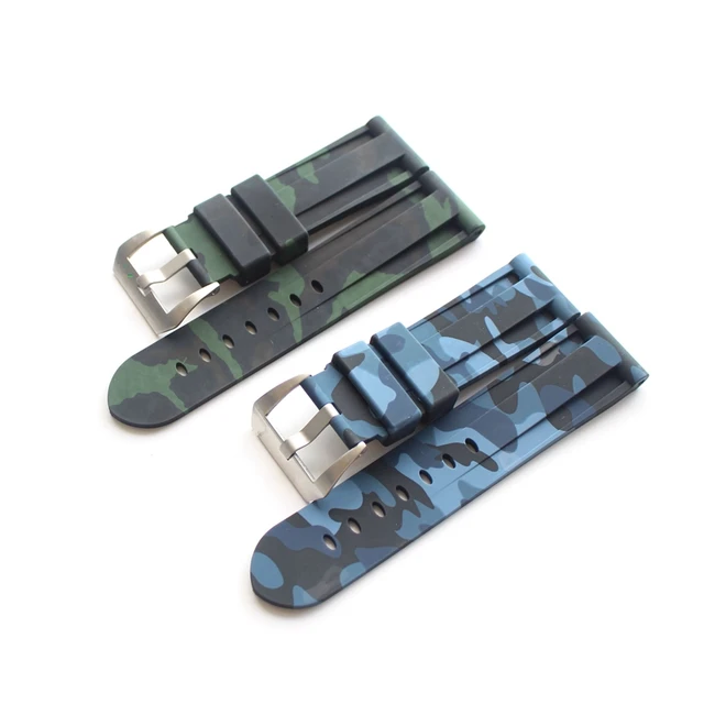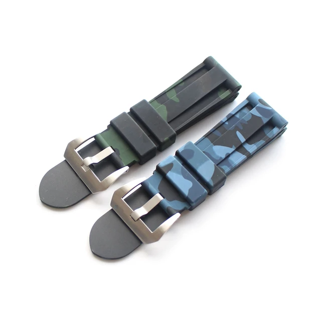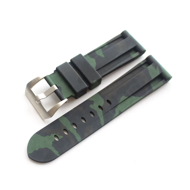 | [해외]TJP 24 미리메터 카모 블루 녹색 남성 방수 실리콘 고무 시계 줄 대한 PAM111 Pam/파네 큰 파일럿 시계 스트랩 로고 |