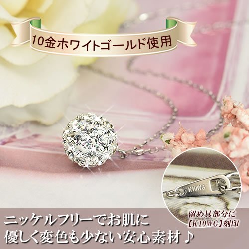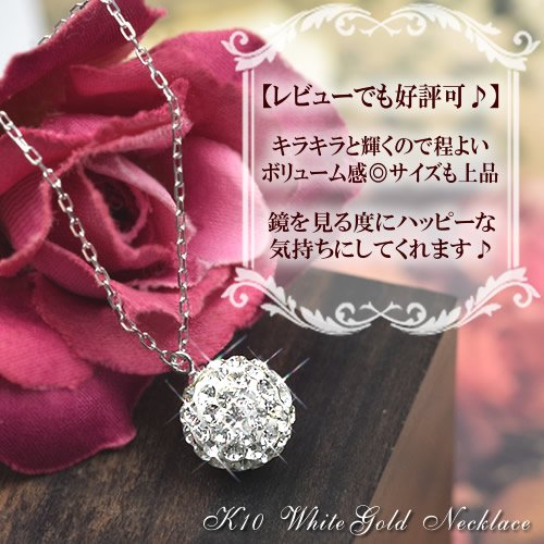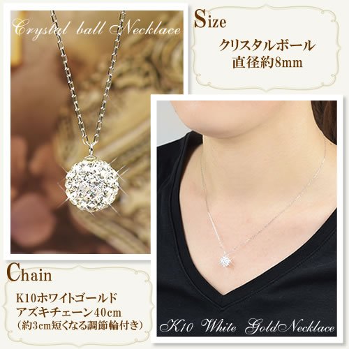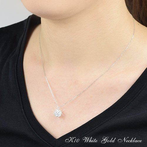 チェーンの長さ:K10ホワイトゴールド約40cm (約3cm短くできる調節輪付き)