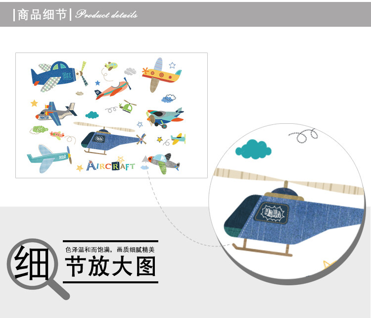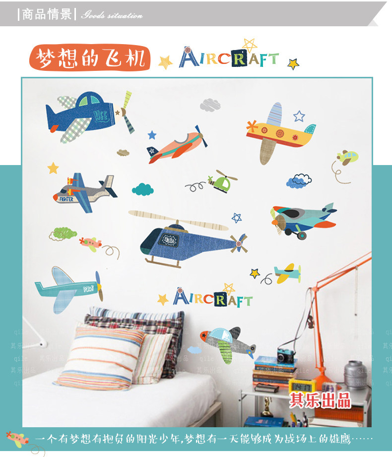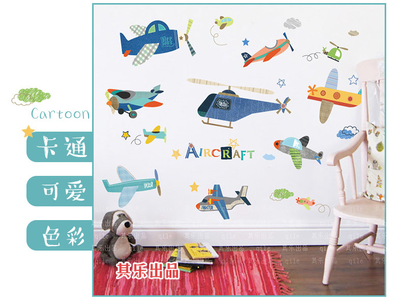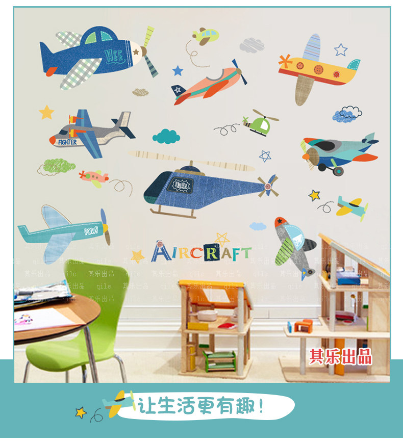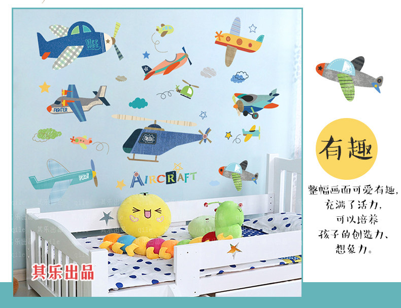 可爱儿童房男宝宝卧室装饰品墙贴纸卡通飞机幼儿园布置自粘墙贴画