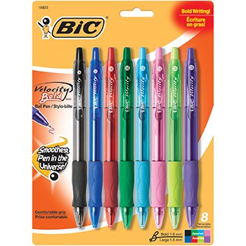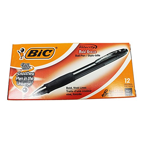 BIC Velocity Bold has a 1.6 mm bold point and Easy-Glide System ink to create a smooth writing experience. This pen writes in bold, vivid lines and has a rubber grip for comfortable writing.