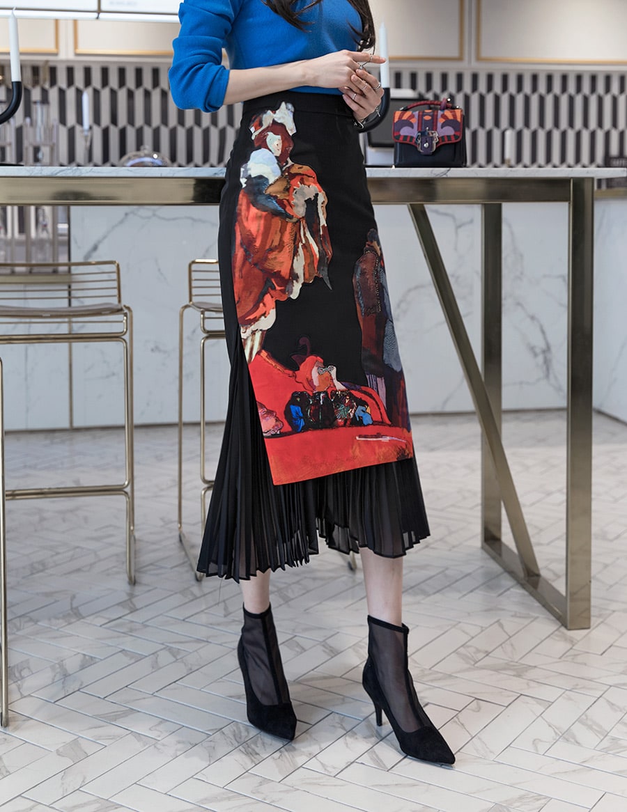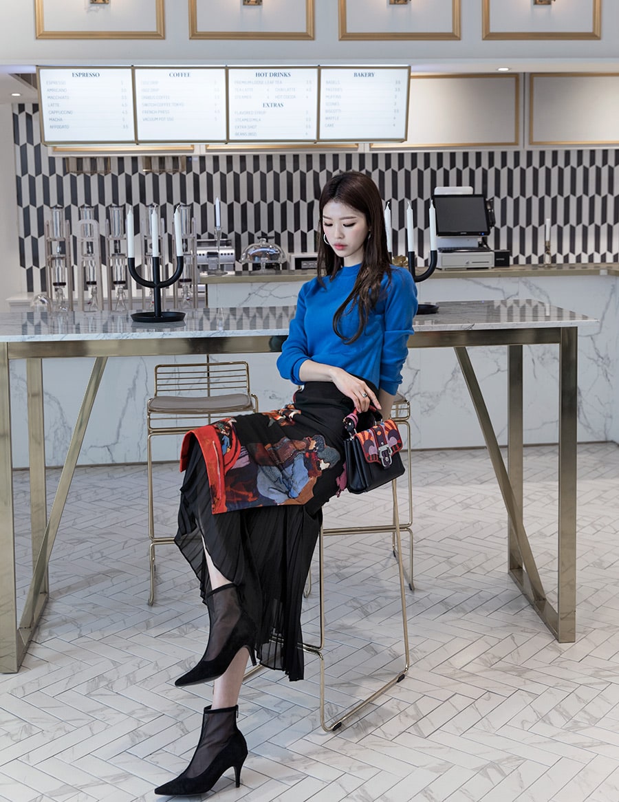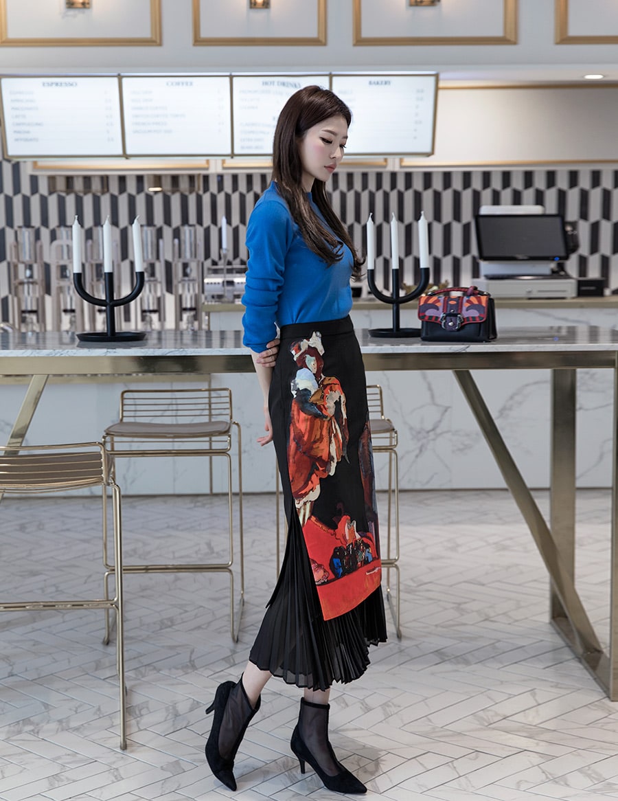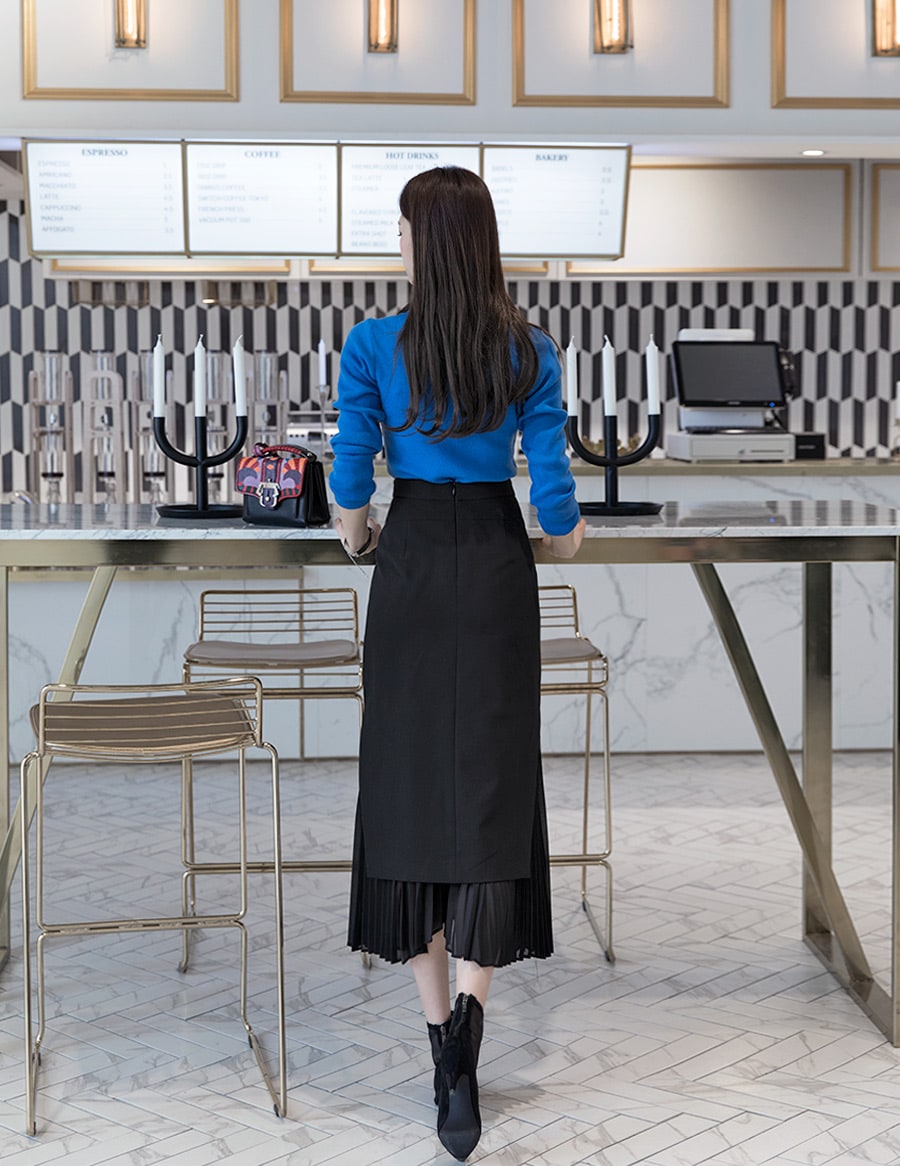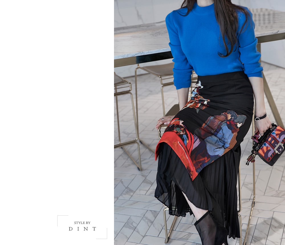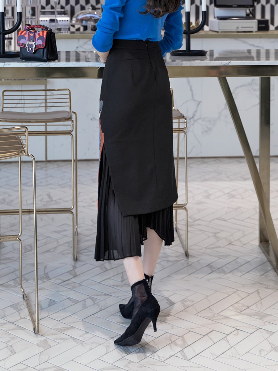 SK1661 앤디크 포인트 플리츠 스커트 Black mix