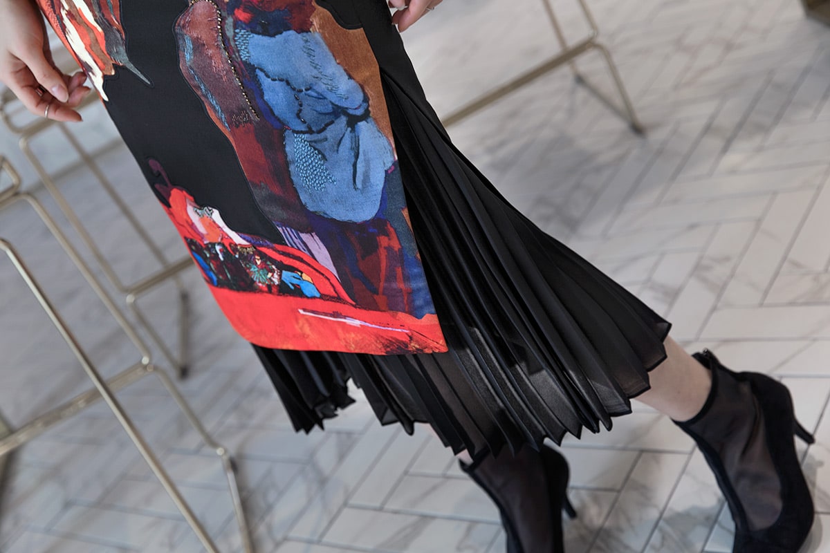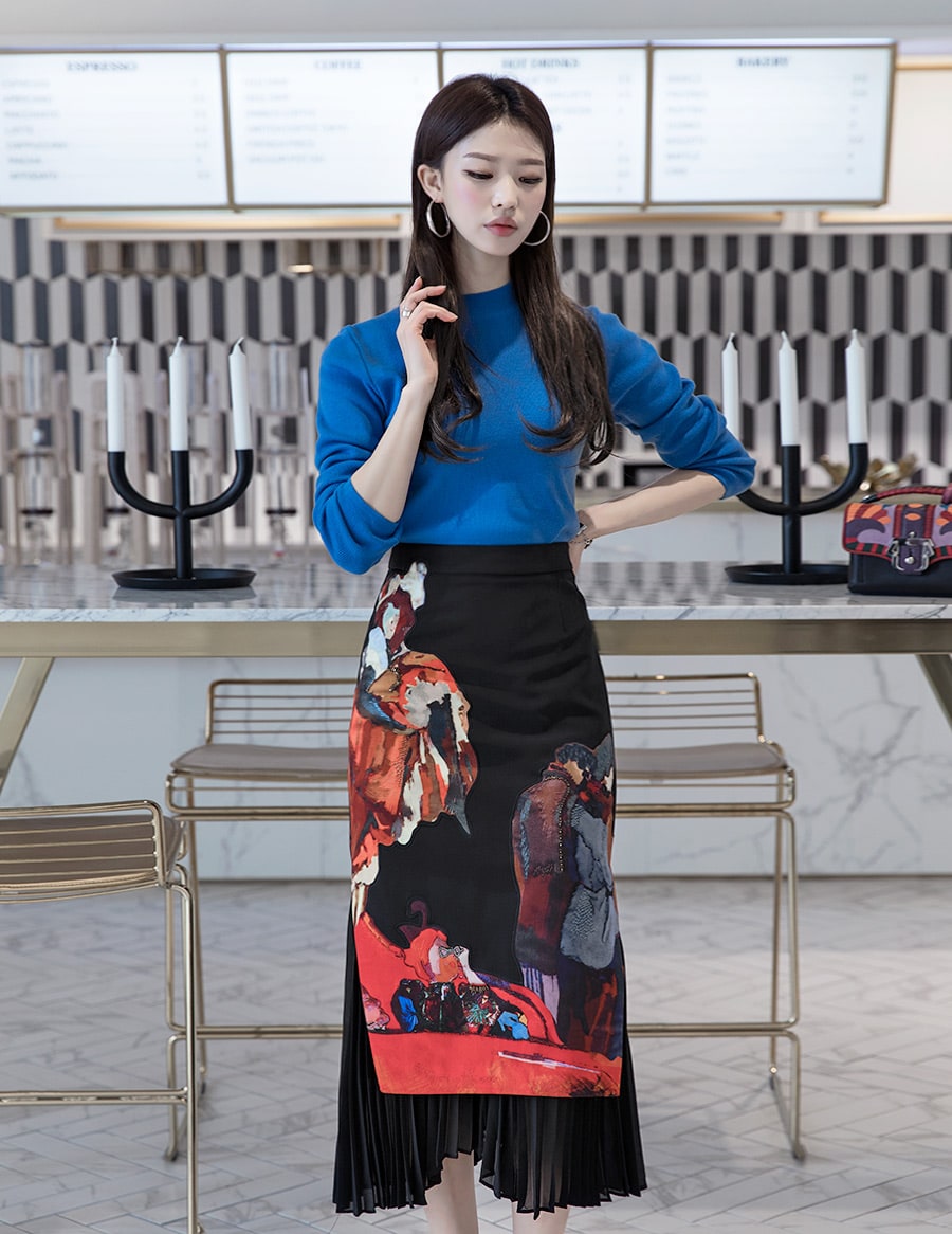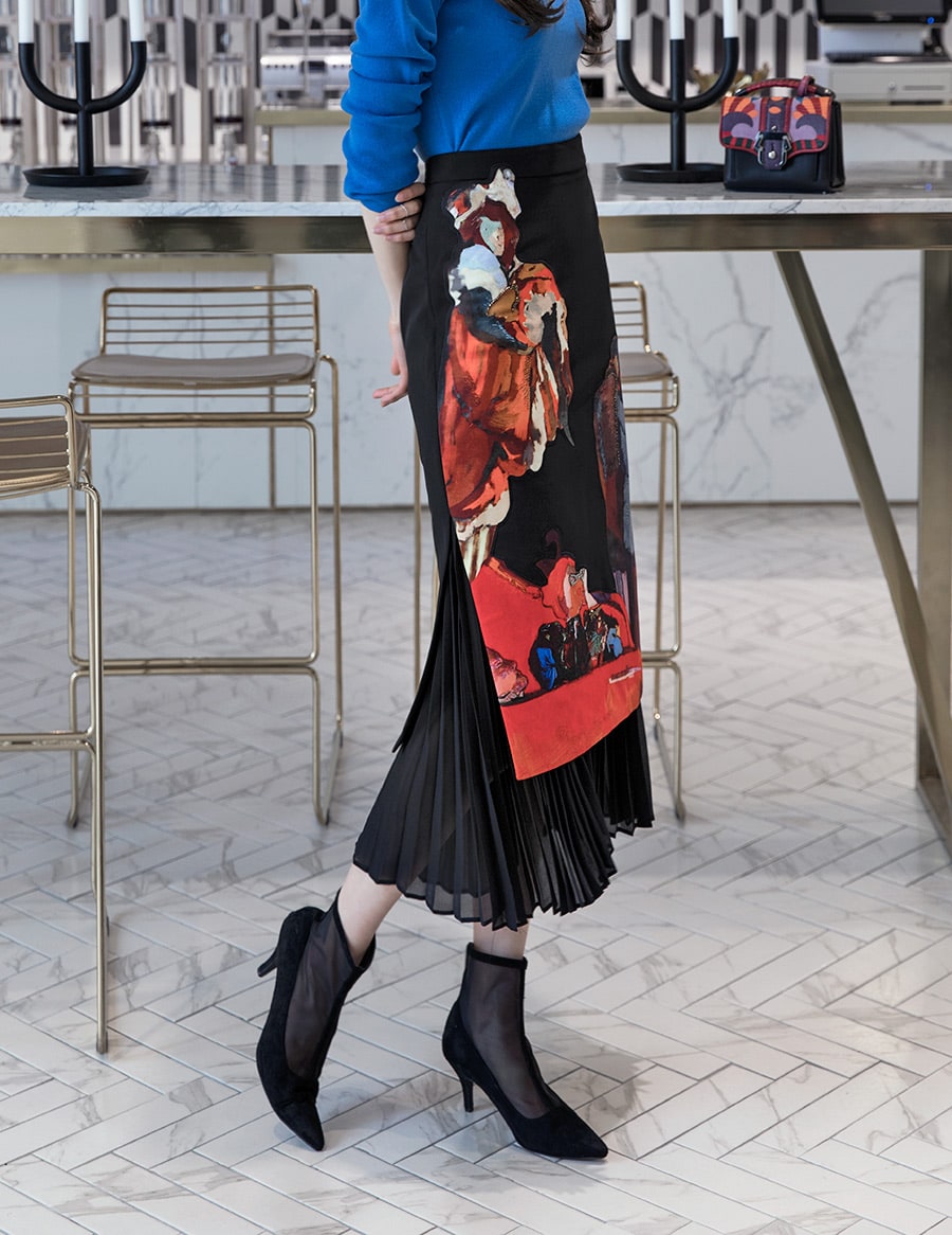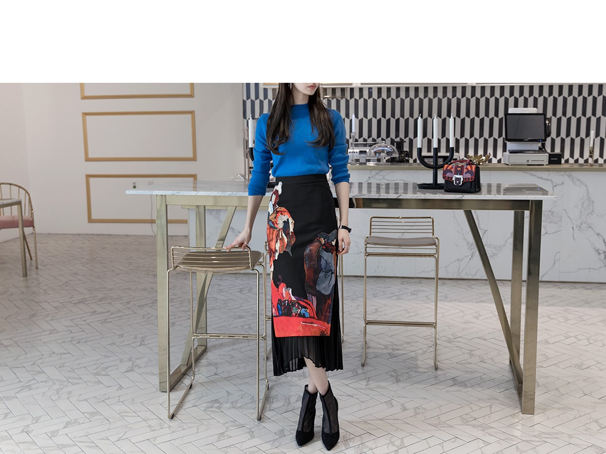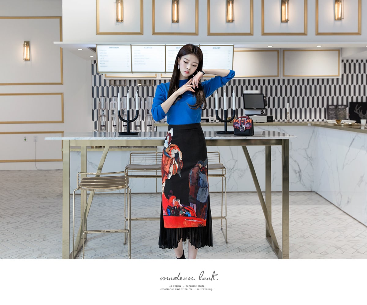 SK1661 앤디크 포인트 플리츠 스커트 Black mix