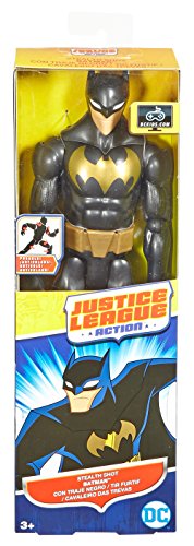 -. Binding : Toy -. Brand : Mattel -. Color : Black -. EAN : 0887961385137 -. Feature : New 12" Justice League Action Batman figure / Black Batsuit, newly enhanced features and a cloth cape / Bonus knee articulation for a total of 11 points / 8 new figures in the full assortment will build the ideal Justice League Action team! Each figure sold separately, subject to availability / Each figure sold separately, subject to availability -. IsAdultProduct : 0 -. Label : Mattel -. Manufacturer : Mattel -. Model : DWM50 -. MPN : DWM50 -. PackageQuantity : 1 -. PartNumber : DWM50 -. ProductGroup : Toy -. ProductTypeName : TOYS_AND_GAMES -. Publisher : Mattel -. Size : 12 inches -. Studio : Mattel -. Title : DC Justice League Action Stealth Shot Batman Figure, 12" -. UPC : 887961385137 -. Warranty : 1 year warranty against manufacturer defects