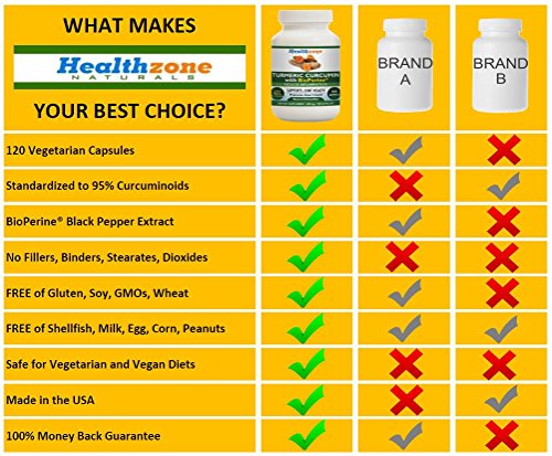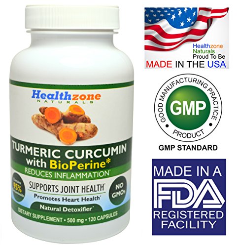 -. Binding : Health and Beauty -. Brand : Healthzone Naturals -. Color : White -. EAN : 0757901709029 -. Feature : HIGHEST QUALITY INGREDIENTS: Our more potent 100% pure organic pills are combined with Bioperine® which significantly increases absorption & provides powerful Anti-Inflammatory and Antioxidant properties. / HEALTHZONE NATURALS EXTRAS: FREE Joint Pain Tracking Sheet: Track your (back, knee, hip, wrist) pain in less than 1 minute per day. Plus, you get 3 FREE Health E-Books sent via email. / MADE IN THE USA: Our supplements are manufactured exclusively in the USA in a FDA-approved facility following strict GMP guidelines. Safety is very important to us! / NO PRESERVATIVES or GMOs: Our veggie capsules are free from preservatives, GMOs, fillers, additives, gluten, soy, milk, egg, peanuts, shellfish and stearates. / 365 DAY EMPTY BOTTLE MONEY BACK GUARANTEE: We stand behind our products. Feel better or you get 100% of your Money Back. Guaranteed. NO QUESTIONS ASKED! -. IsAdultProduct : 0 -. Label : Healthzone Naturals -. Manufacturer : Healthzone Naturals -. PackageQuantity : 1 -. ProductGroup : Health and Beauty -. ProductTypeName : HEALTH_PERSONAL_CARE -. Publisher : Healthzone Naturals -. Studio : Healthzone Naturals -. Title : Turmeric Curcumin Dietary Supplement with BioPerine Black Pepper Extract - 120 Vegetarian 500mg Capsules - All Natural Pain Relief - Extra Strength - 95% Standardized Curcuminoids - Made in the USA -. UPC : 757901709029