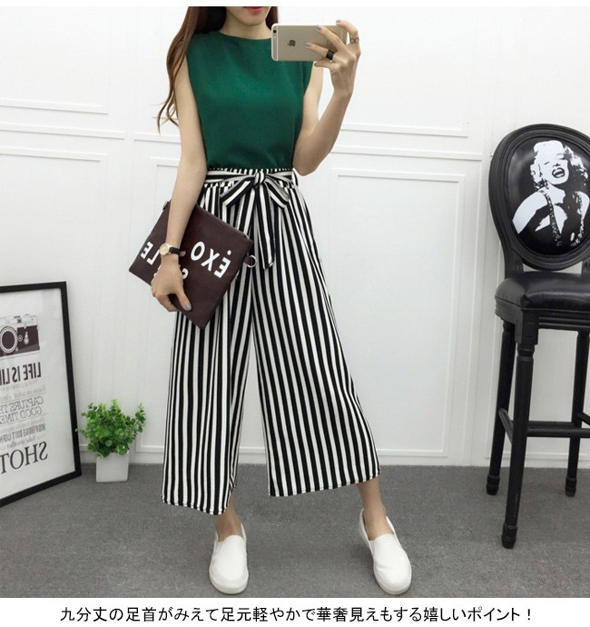 九分丈の足首がみえて足元軽やかで華奢見えもする嬉しいポイント!
