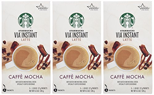 STARBUCKS VIA LATTE - CAFFE MOCHA (5 SINGLE SERVE PACKETS) (PACK OF 3)