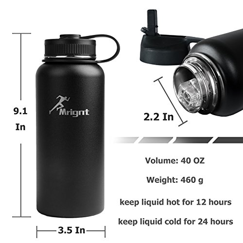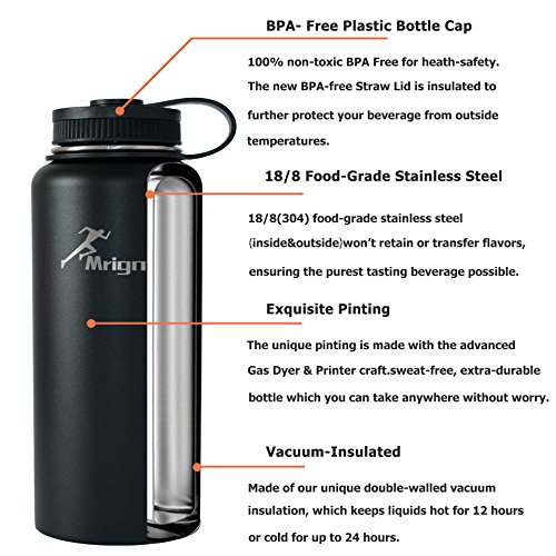 -. Feature : SUPERIOR INSULATION: Unique double walled vacuum insulation technology with vacuum-seal cap keeps hot water up to 12 hours, cold water up to 24 hours. With the Stainless Steel Vacuum Insulated Sports Water Bottle, your favorite drinks are always by your side and always at the right temperature! / DURABLE AND SAFE:Made of High-quality food grade 304 (18/8) stainless steel on both inside and outside walls, scratching resistance, 100% non-toxic BPA Free for heath-safety. Preservative and rustproof function keep long using time. ProP.R.Ietary powder coat for an easy-grip, sweat-free, extra-durable bottle which you can take with to go hiking or play sports. / USER-FRIENDLY DESIGN: Light weight, equip with a portable bottle pouch; it's easy to carry and suitable for outdoor sports. With the wide mouth, your water bottle is easy for cleaning and ice-filling. The new BPA-free Straw Lid is insulated to further protect your beverage from outside temperatures. With large travel water bottle, you would never worry about feeling thirsty. / CONSIDERATE ACCESSARIES:【A Foldable Bottle Brush】Easy to Reach Corners of Bottle. Softer brushes won't scratch delicate something that needs a lighter touch. 【A Portable Bottle Pouch】Protect your bottle surface from being scratched, scraping, extrusion and so on; With the adjustable shoulder strap, you can wear over the shoulder or cross chest as a sling bag or just hand carry / 2-YEARS WARRANTY: Mrignt Store will replace or refund any parts found to be defective due to manufacturer flaws. If you have any problem, please feel free to contact our customer service. We will always be here to help you deal with the issue.